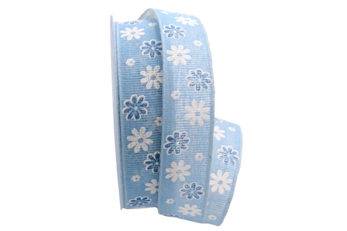 Dieser Artikel: Baumwollband Blumenwiese blau 25mm ohne Draht