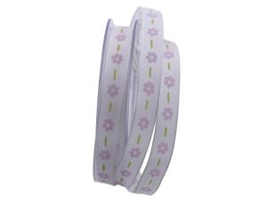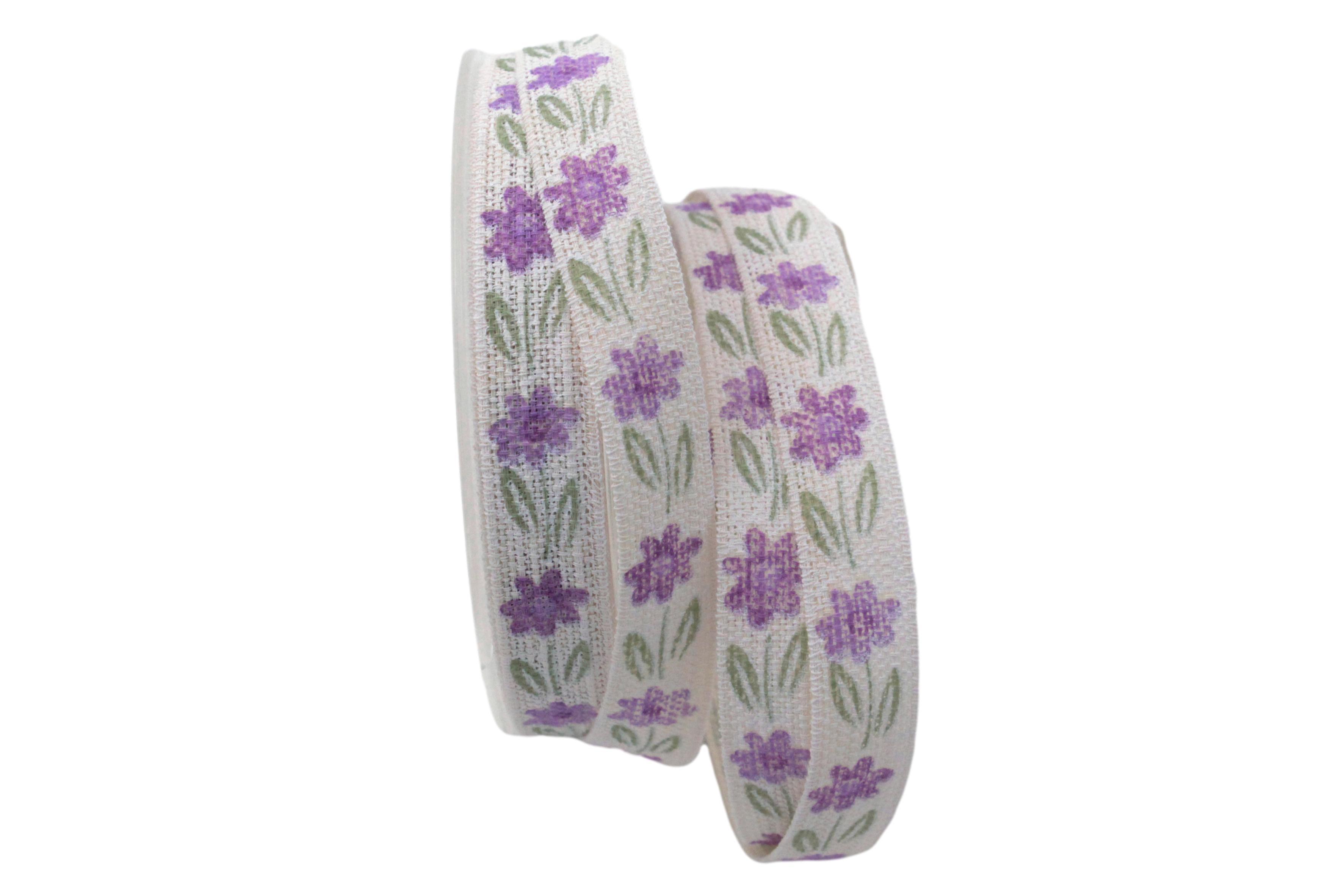 Baumwollband Sommertraum flieder / weiß 15mm ohne Draht