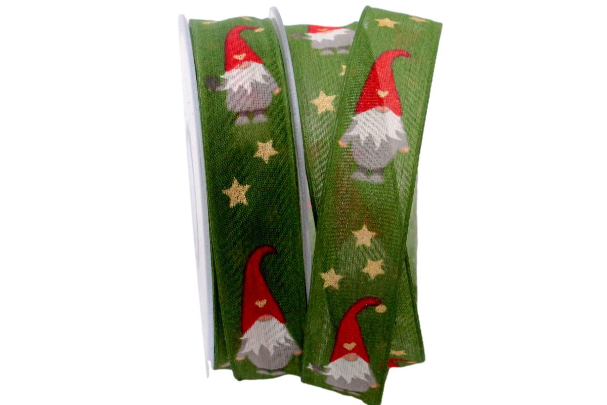 Baumwollband Weihnachtswichtel grün 25mm ohne Draht