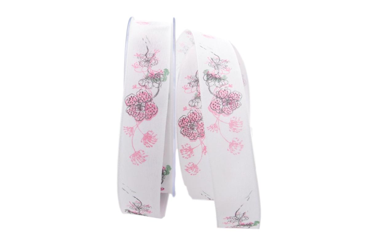 Blumenband Mainau rosa 25mm mit Angelschnur