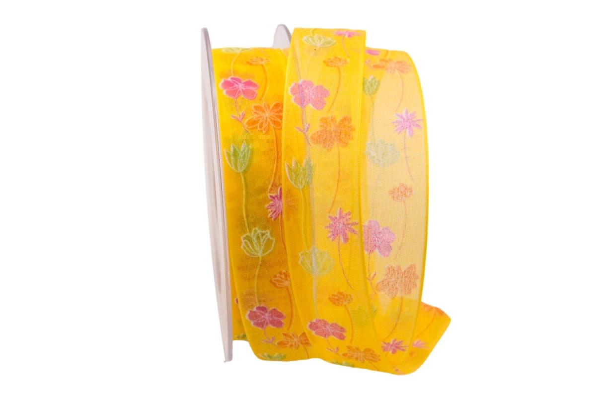 Blumenband Prato fiorito gelb / bunt 25mm mit Nylonkante