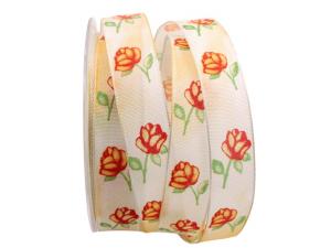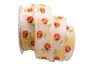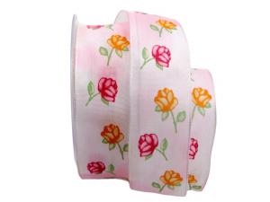 Ein fröhliches, dekoratives Rosenband mit Drahtkante für Floristik und Geschenkverpackungen.