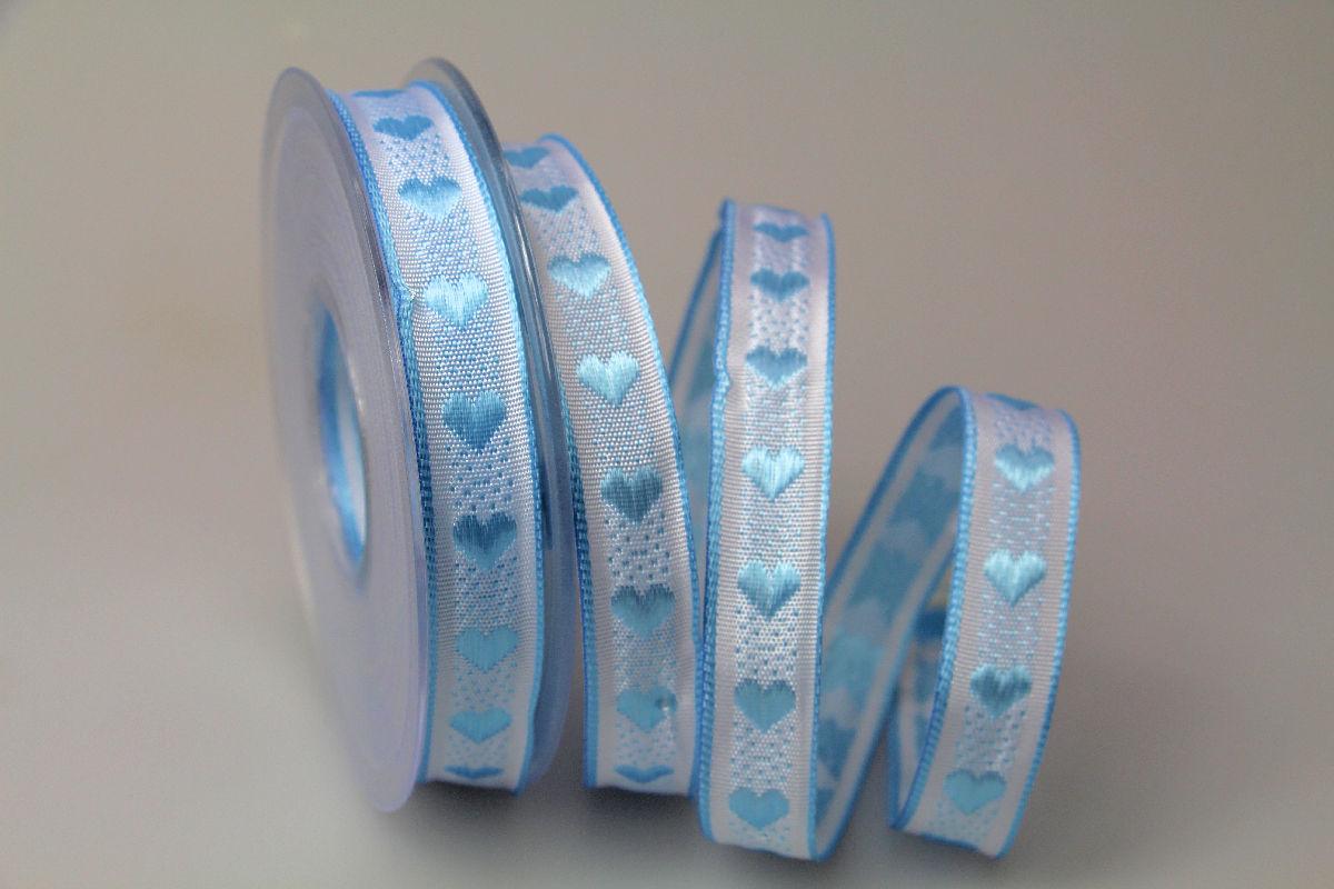 Dekoband Herzchen gewebt hellblau 15mm mit Draht