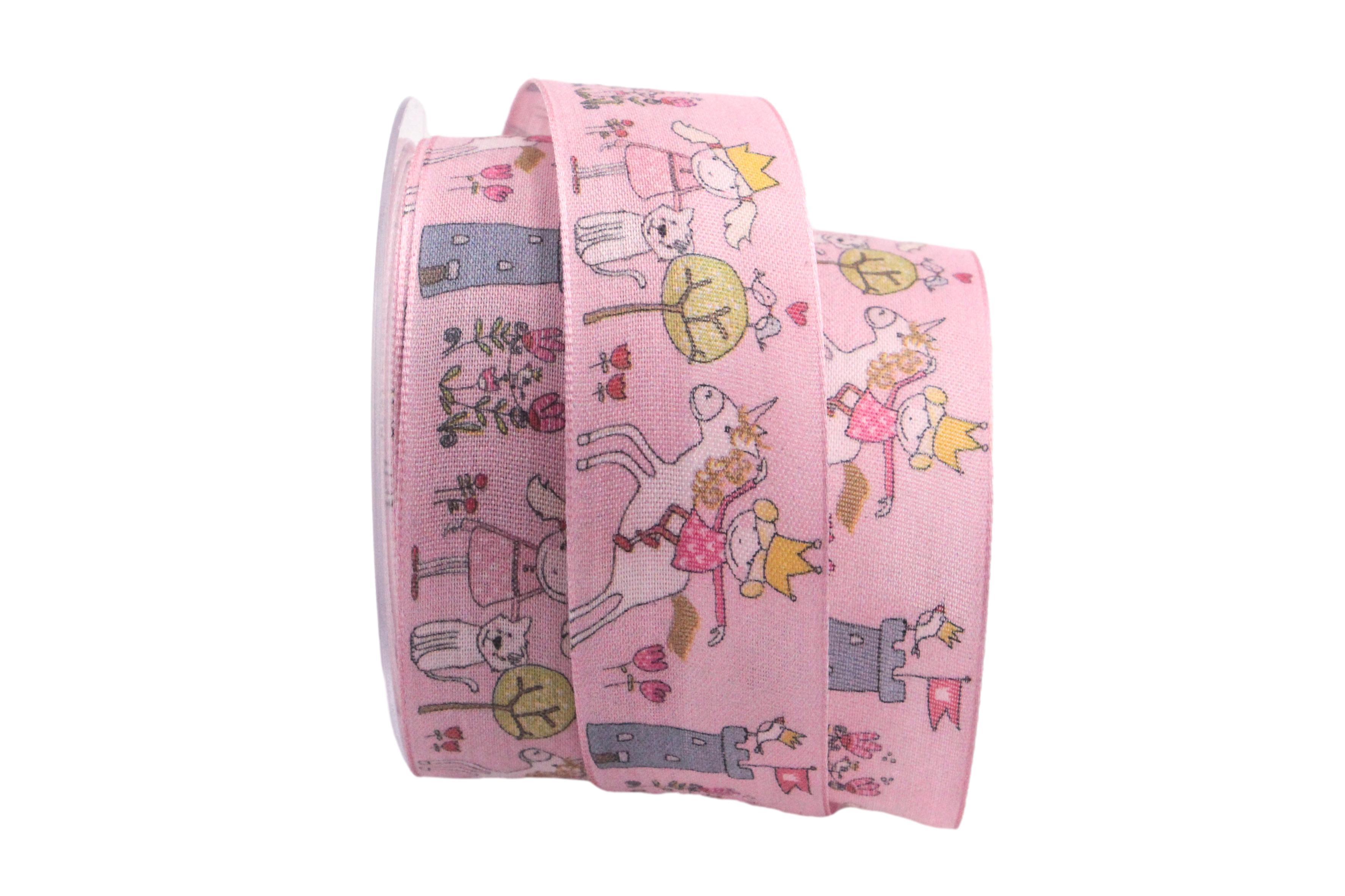 Ein fröhliches farbenfrohes Dekoband mit Prinzessin, Einhorn, Katzen, Vögel und Blumen. Dieses Motivband ist für alle Geschenke und Verpackungen für Mädchen in jedem Alter geeignet.