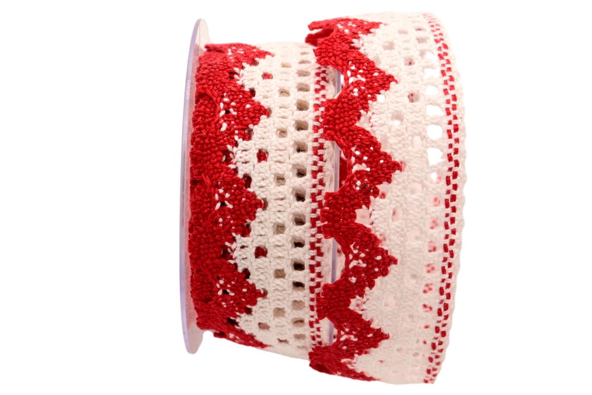 Länge: 5m Breite: ca. 40mm Farbe: creme / rot Material: 100% Baumwolle