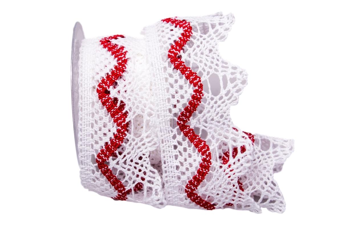 Länge: 5m Breite: ca. 65mm Farbe: weiß / rot Material: 100% Baumwolle