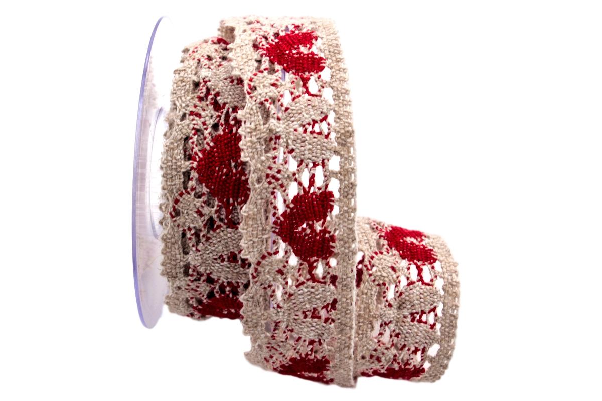 Länge: 5m Breite: ca. 35mm Farbe: natur / rot Material: 100% Baumwolle