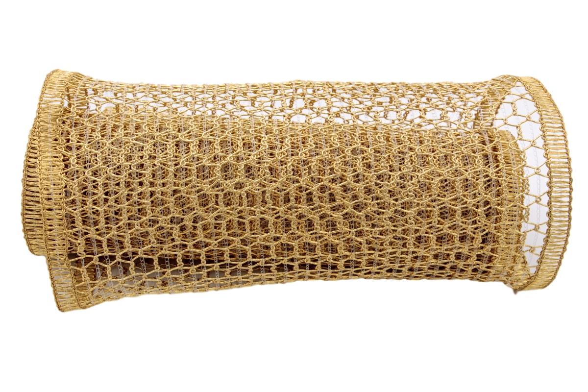 Dieses Gitterband ist sehr schön für Gestecke und Blumendekorationen. Auch gut zum basteln und verpacken geeignet. An diesem Goldgitter kann man Sachen befestigen, das Band als Tischband verwenden... Die Vielseitigkeit kennt hier keine Grenzen.