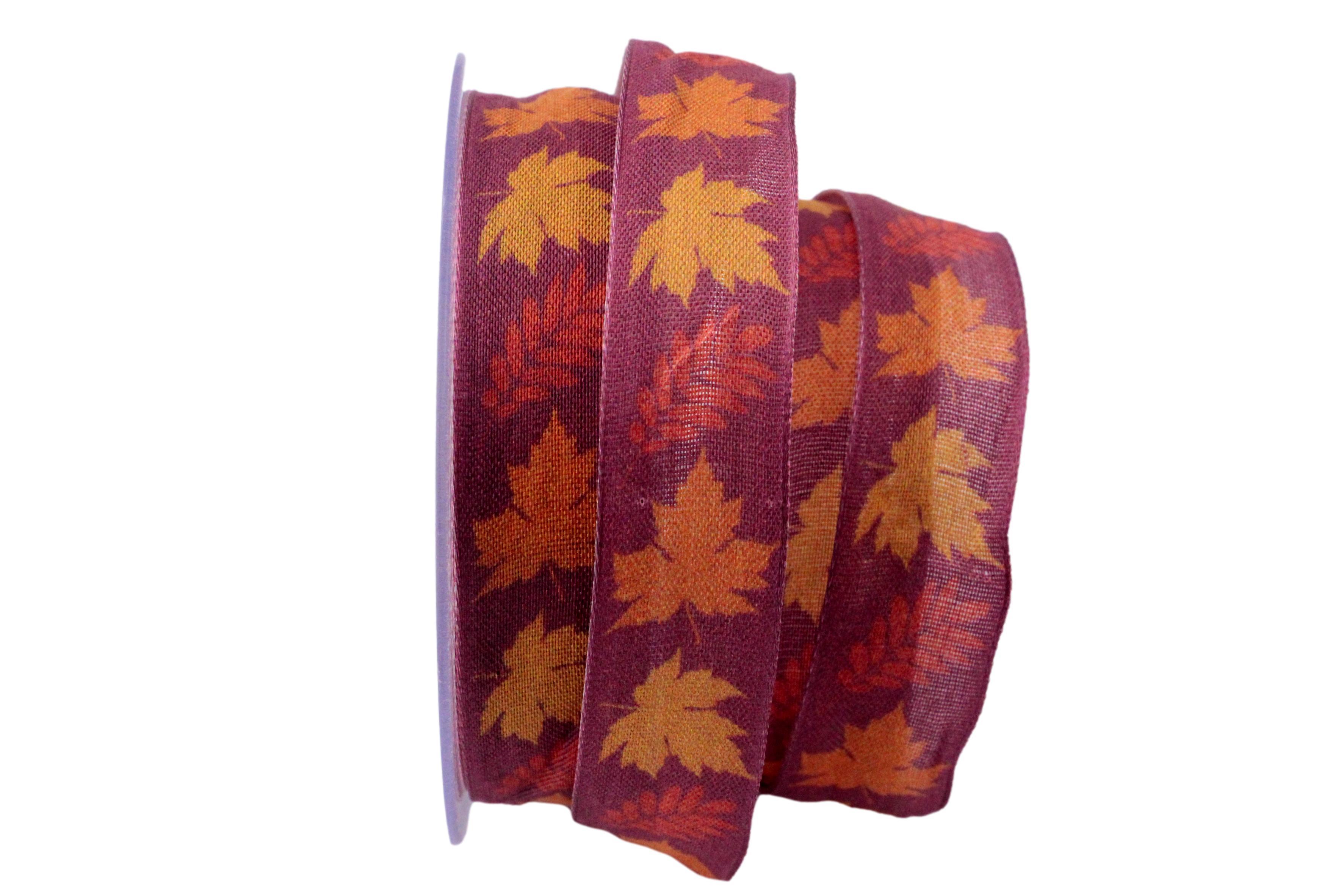 Herbstband buntes Laub lila 25mm mit Nylonkante