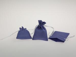 Die Säckchen haben ein zweifarbiges Design und kombinieren eine Farbe mit reinem Weiß als Kontrast. Die kleinen Karos mustern die Oberfläche der Stoffe gleichmäßig. Ein leuchtendes Rot erscheint durch den Gegensatz zum Weiß noch intensiver, strahlt aber auch eine angenehme Energie aus. Bordeaux ist eine Herbstfarbe und passt perfekt zu einem gemütlichen Kamin. Das Säckchen in Hellgrün erinnert an das Erwachen der Natur im Frühjahr. Die Koloration motiviert und belebt. In Blau laden die Dekorationen zum Träumen ein und ergänzen einen klaren, aufgeräumten Stil.