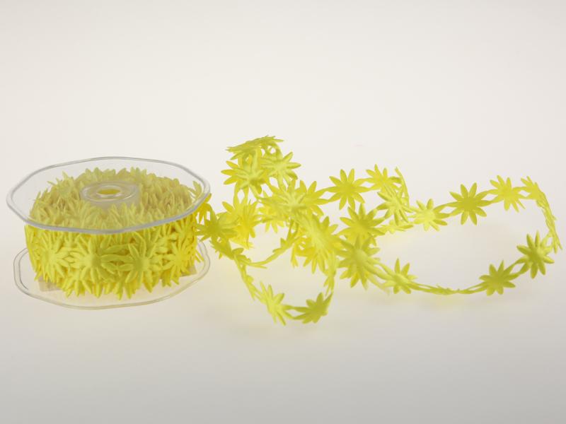 Wattierte Blumen aneinandergereiht zu einer Blumengirlande.Sehr schön zur Frühjahrsdekoration und auch zum Basteln und Verarbeiten in der Geschenkverpackung.