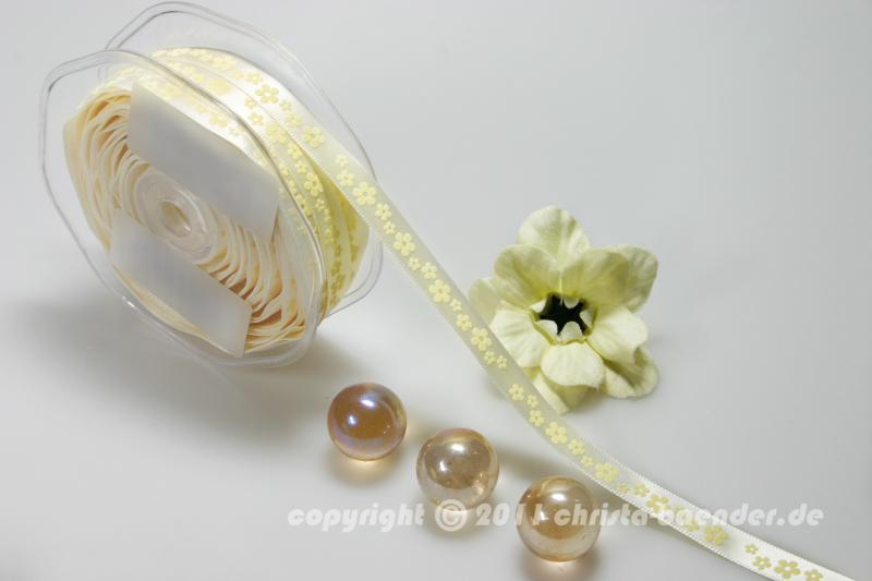 Länge: 25m Breite: 10mm Farbe: creme/pastellgelb Material: 100 % Polyester