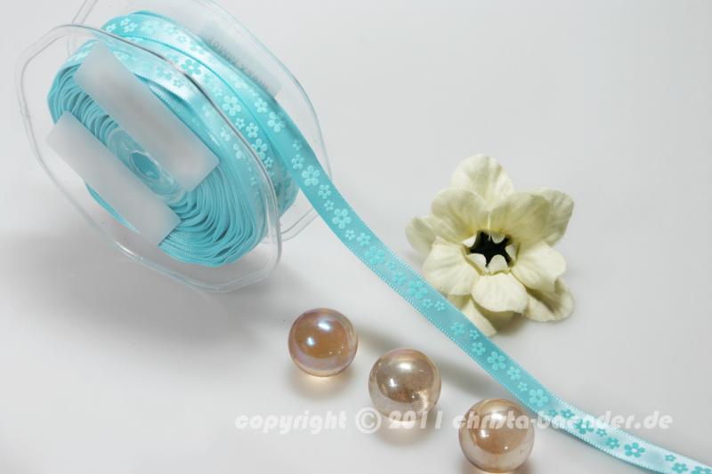 Ein Satinband mit Schaumdruckblümchen. Eignet sich sehr gut für kleine Geschenke, Dekorationen und Verpackungen.
