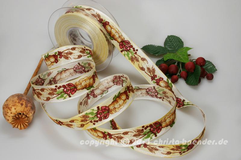 Ein Motivband mit Erntedankdruck zur Geschenkverpackung und Gestaltung in der herbstlichen Zeit.