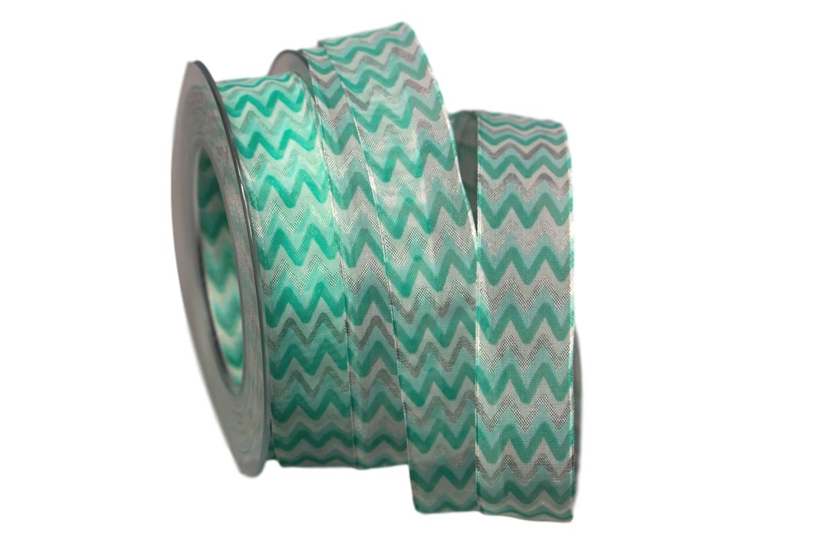Ein farbenfrohes Organzaband mit modernem Zick-Zack-Druck. Dieses Band lässt sich das ganze Jahr super in Dekorationen, Verpackungen und Bastelarbeiten verarbeiten.