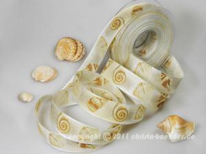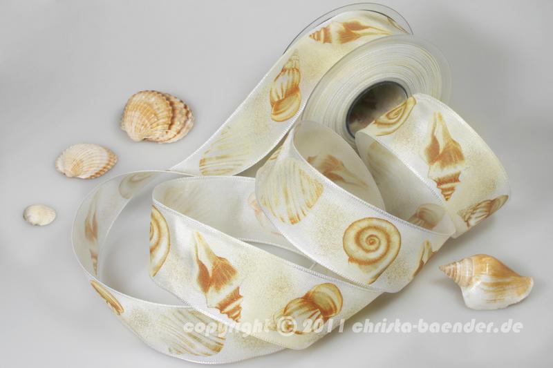 Ein Motivband der besonderen Art. Dieses Band mit wunderschönen Muscheln, eignet sich hervorragend zur Geschenkverpackung und Dekoration.