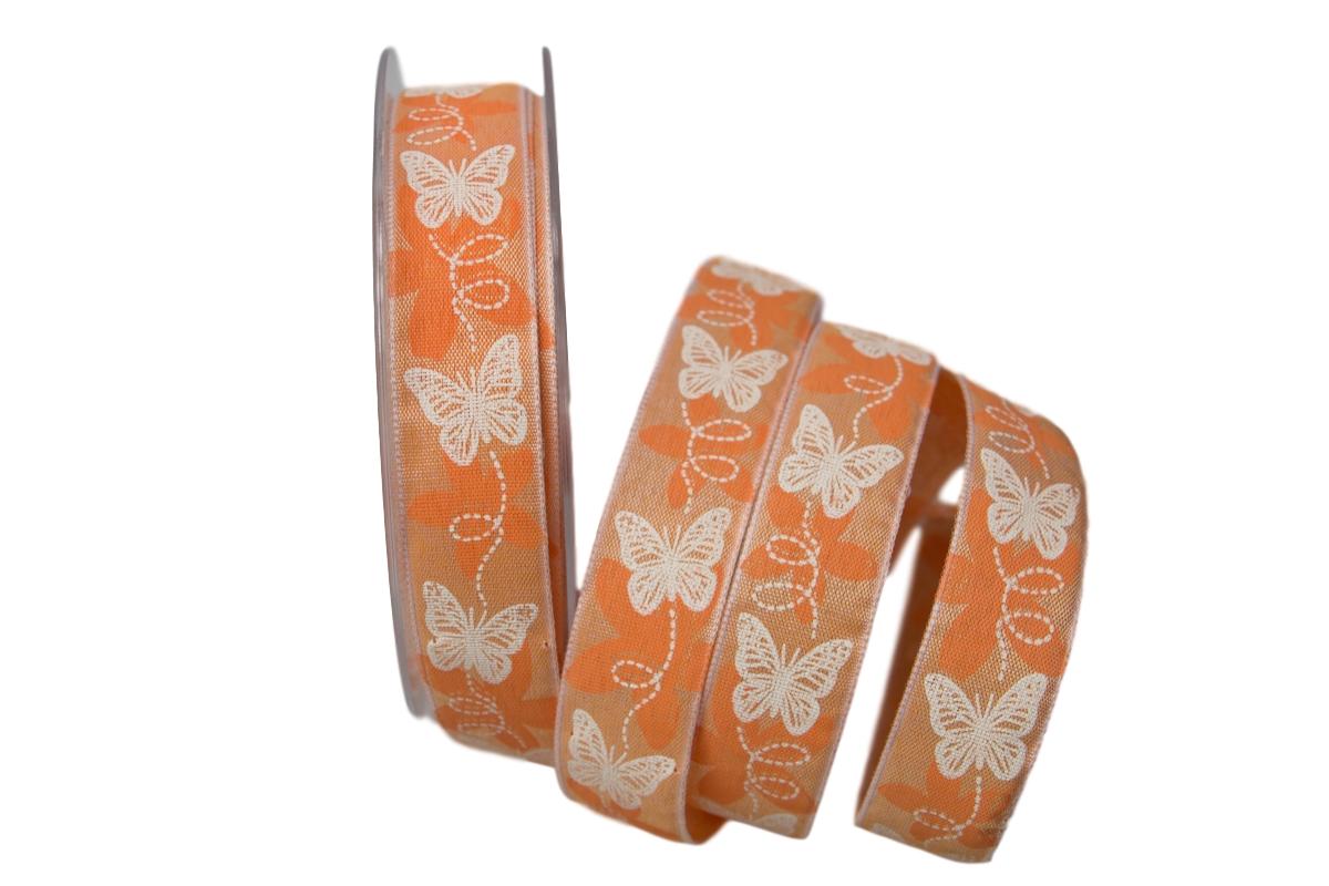 Motivband Schmetterling orange ohne Draht 25mm