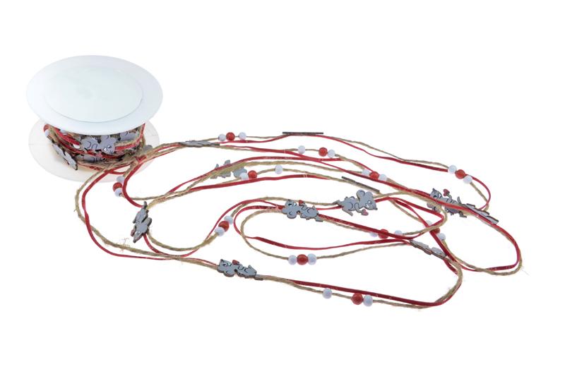 Eine sehr dekorative Motivgirlande Lederbändchen und Naturschnur mit witziger Holzmaus. Ideal für Geldgeschenke oder lustige Dekorationen und Verpackungen.