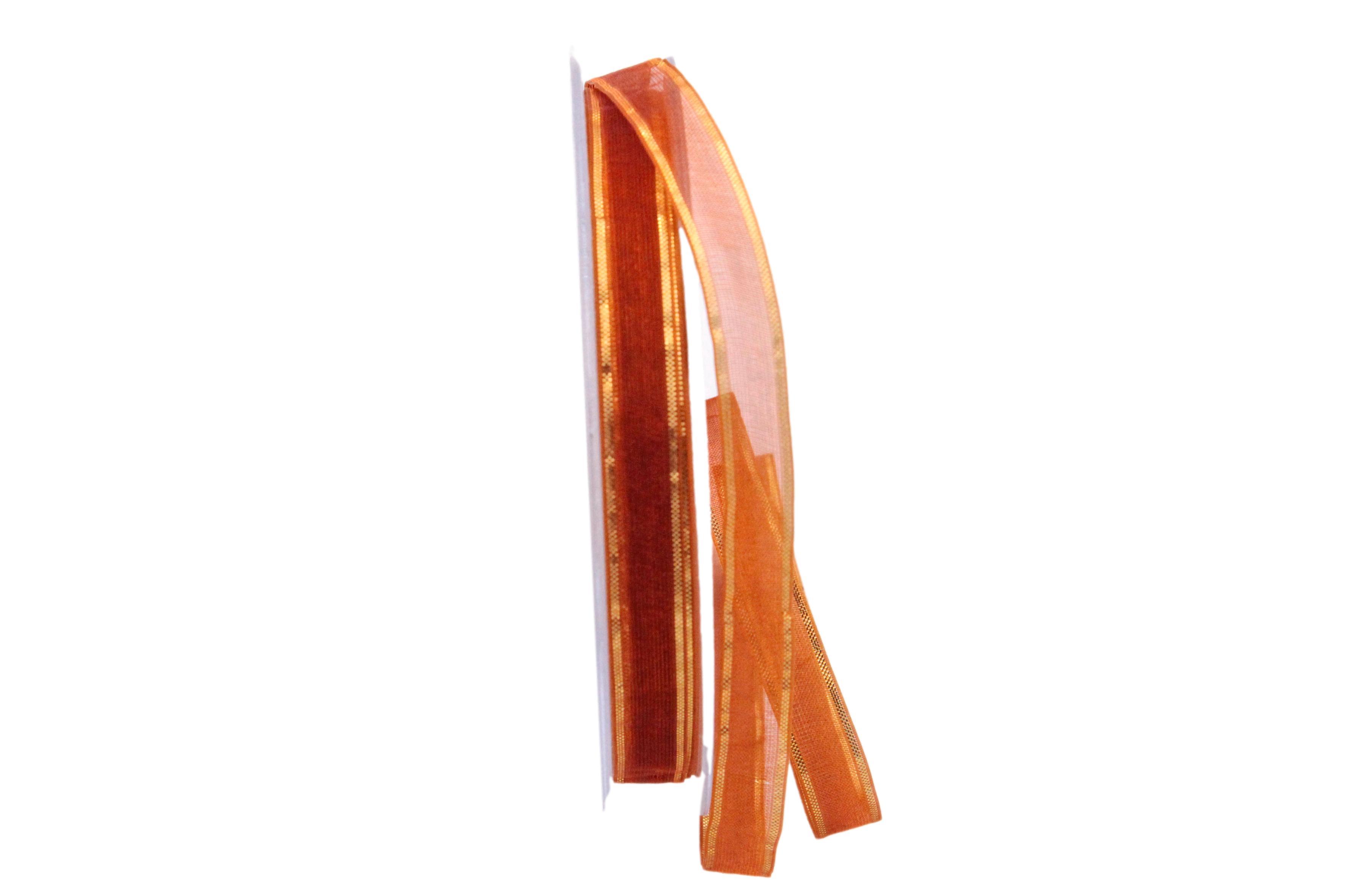 Ein farbenfrohes Organzaband mit seitlich aufgedrucktem Goldrand. Schön für Dekorationen und Verpackungen in der festlichen Zeit sowie für feierliche Anlässe und kleinen Geschenkenn.