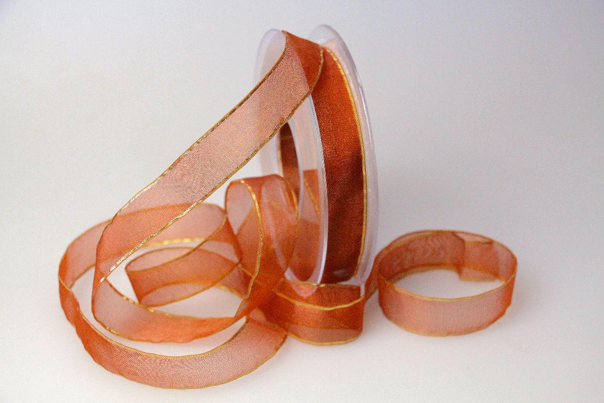 Organzaband 15mm braun mit Goldkante ohne Draht