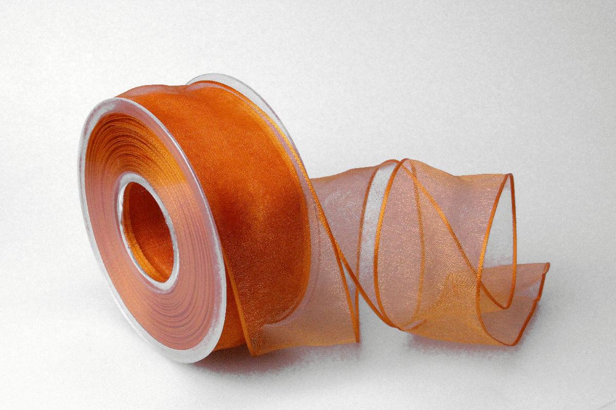 Ein Organzaband mit seitlicher Drahtkante. Lässt sich sehr schön in Blumensträuße und hängende Dekorationen hineinarbeiten.