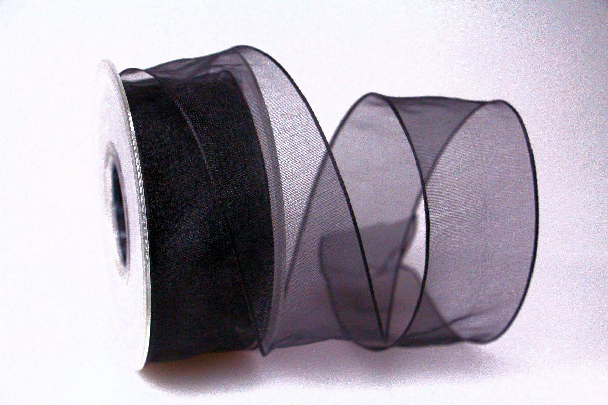 Ein Organzaband mit seitlicher Drahtkante. Lässt sich sehr schön in Blumensträuße und hängende Dekorationen hineinarbeiten. Ideal für die Trauergestaltung von Kränzen oder Blumengestecken.