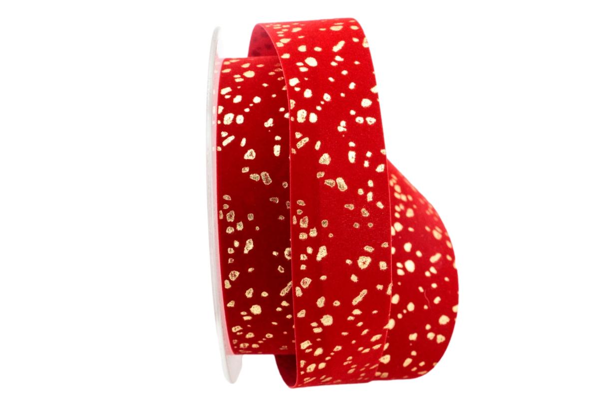 Samtband Goldregen rot 25mm ohne Draht