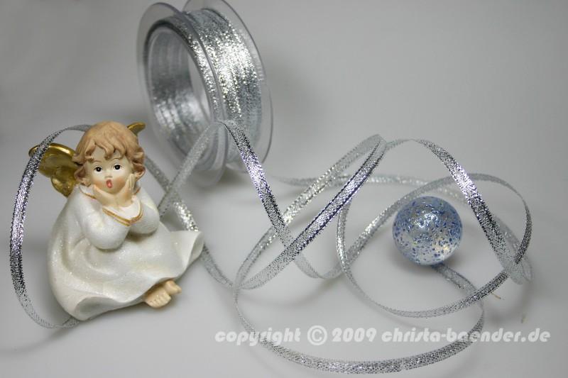 Ein Silberbändchen im Brokatlook, sehr schön für feine Verpackungen oder zum befestigen von Anhängern.