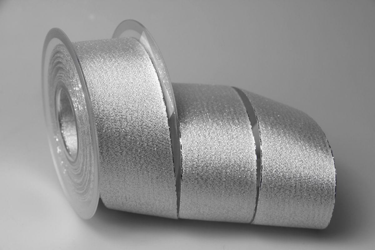 Länge: 20m Breite: ca. 40mm Farbe: silber Material: 82% Polyester 18 % Polyamid