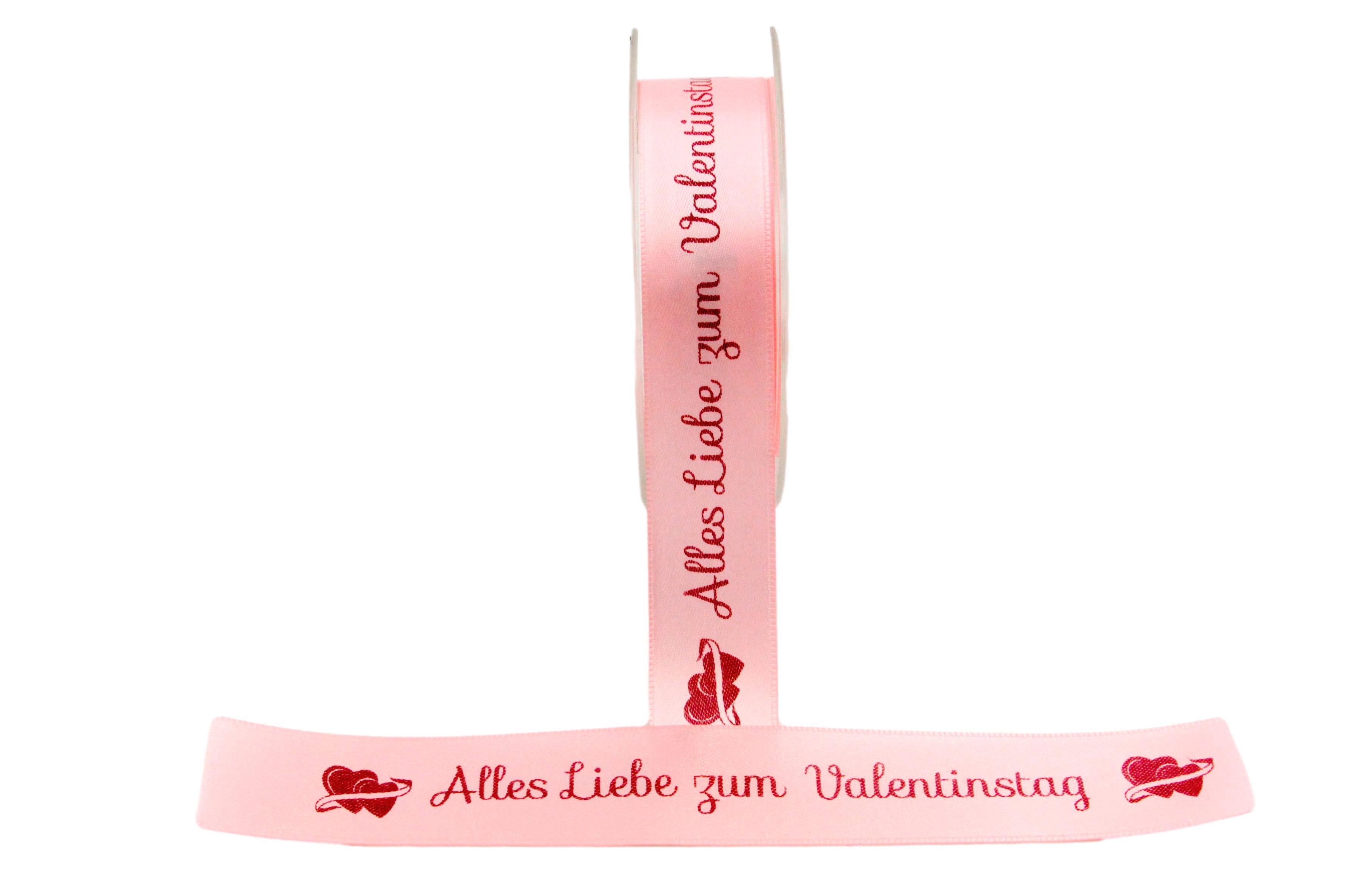 Ein Dekorationsband und Geschenkband mit dem Aufdruck: " Alles Liebe zum Valentinstag " Dieses Band ist schön für die Verpackung und Dekoration von Geschenken für alle Verliebten. Weitere Bandfarben und Schriftfarben jederzeit auf Anfrage möglich