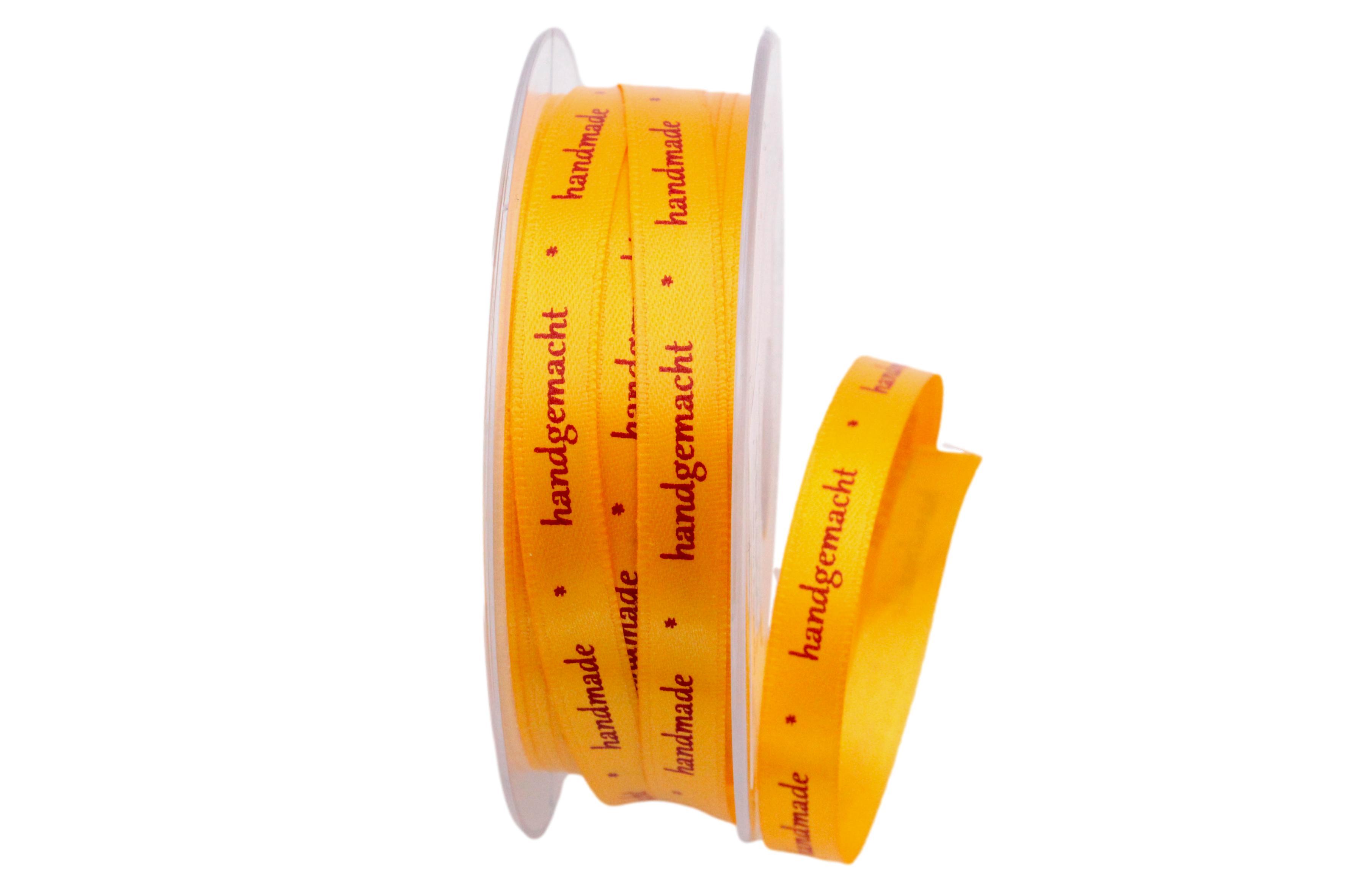 Spruchband "handmade*handgemacht" gelb 10mm ohne Draht