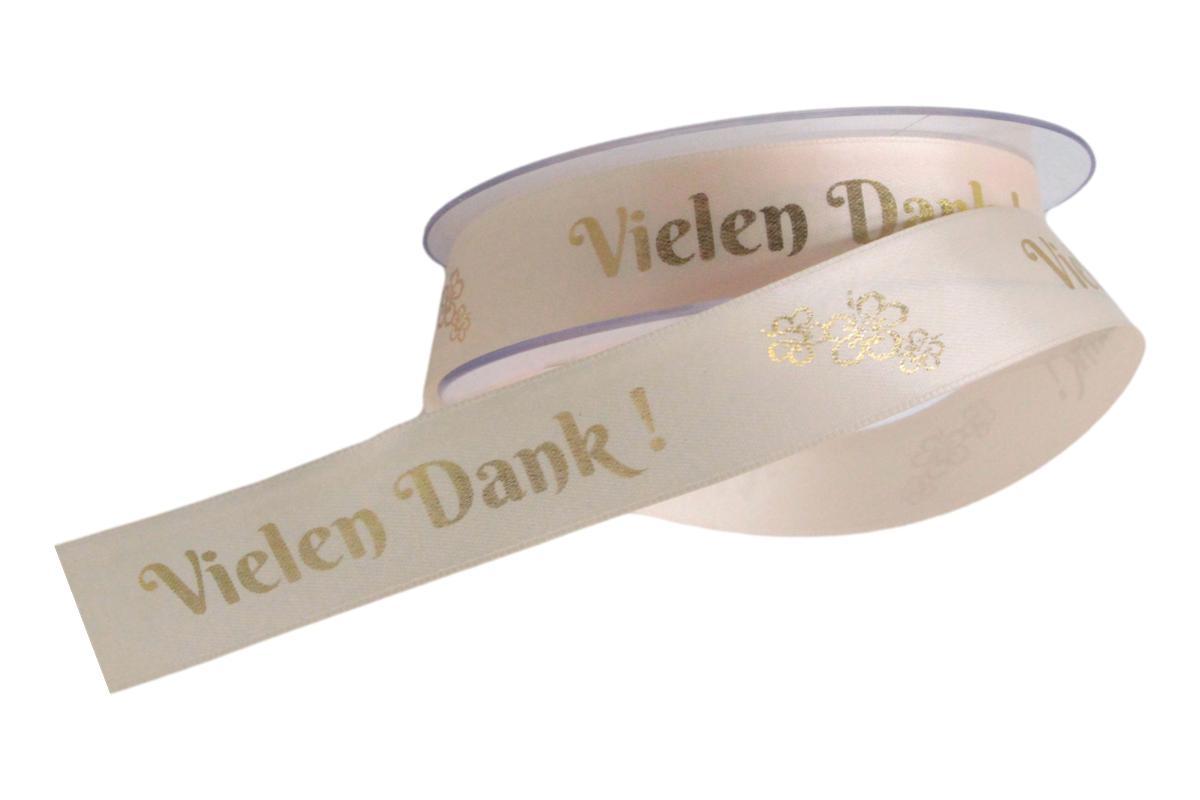 Ein Dekorationsband und Geschenkband mit dem Aufdruck: "Vielen Dank " und kleinen Blümchen Dieses Band ist schön für die Verpackung und Dekoration von Geschenken und Souveniers. Weitere Bandfarben und Schriftfarben jederzeit auf Anfrage möglich www.druckbaender.de