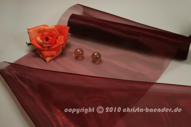 Ein Tischband und Dekorationsband aus Organzastoff. Sehr sauber verarbeitet mit leichtem Schimmer.