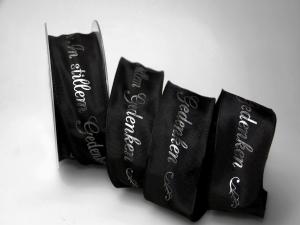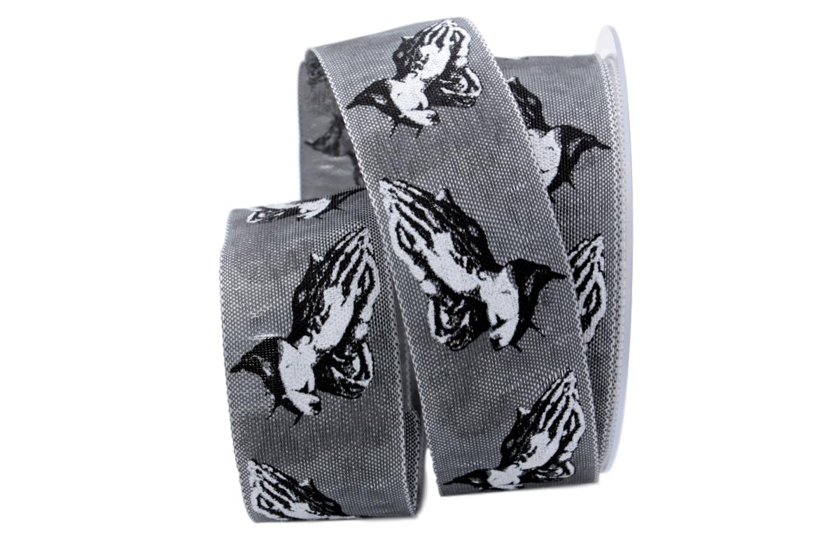 Ein Schleifenband für die Trauerfloristik. Die betenden Hände sind ein Symbol der Kraft und Ruhe.