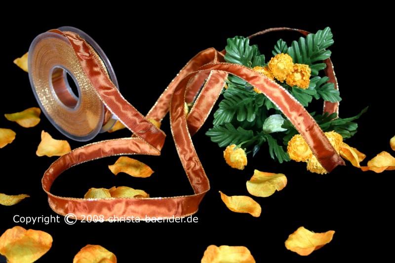 Ein sehr schönes Acetatband, ideal für die festliche und aufwändige Verpackung. Durch die seitliche Golddrahtkante sehr leicht in Form zu bringen.