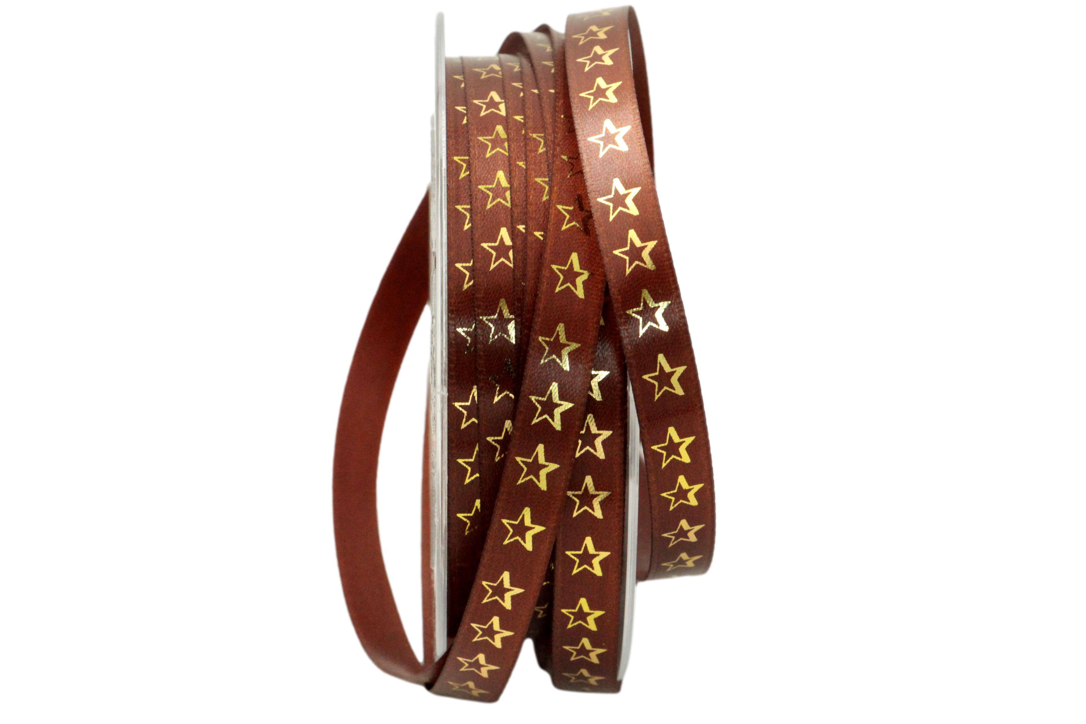 Weichnachtsband Sternchen braun / gold 10mm ohne Draht