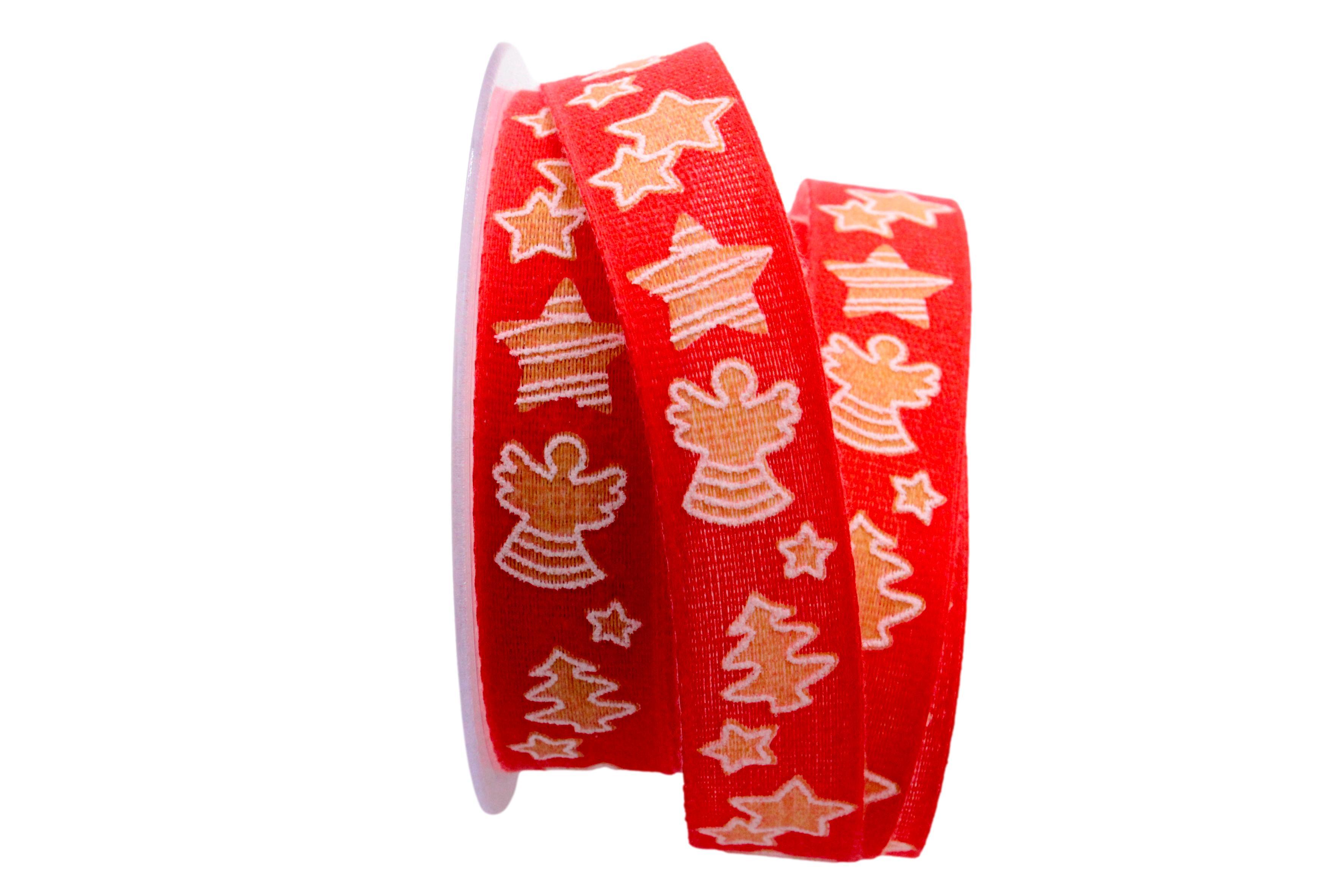 Weihnachsband Lebkuchen rot 25mm ohne Draht