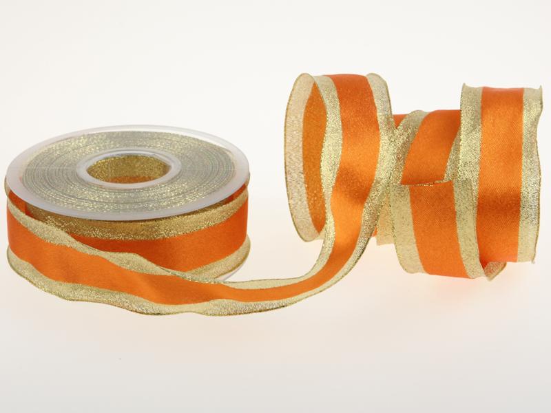 Ein sehr hochwertig verarbeitetes Goldband mit Drahtkante und einen mittelläufigem Satinstreifen. Ideal zum kombinieren mit weihnachtlichen Motivbändern.