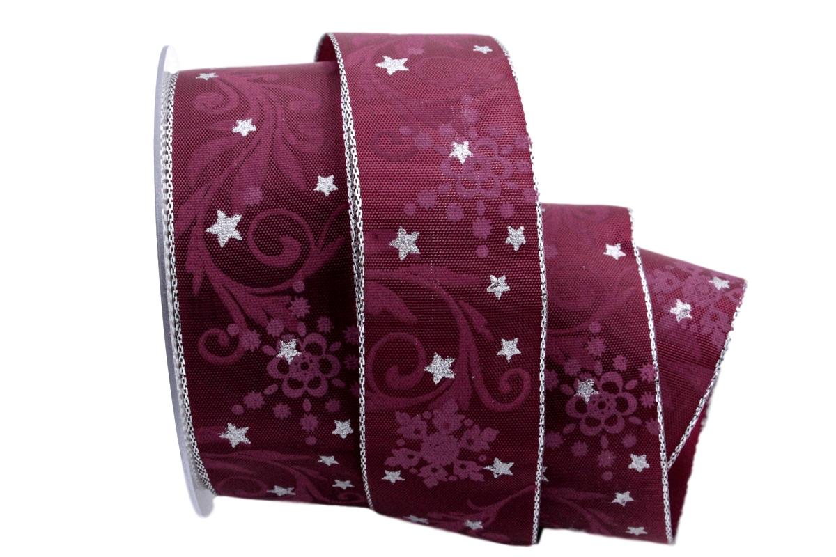Weihnachtsband Diamant pink mit Draht 40 mm
