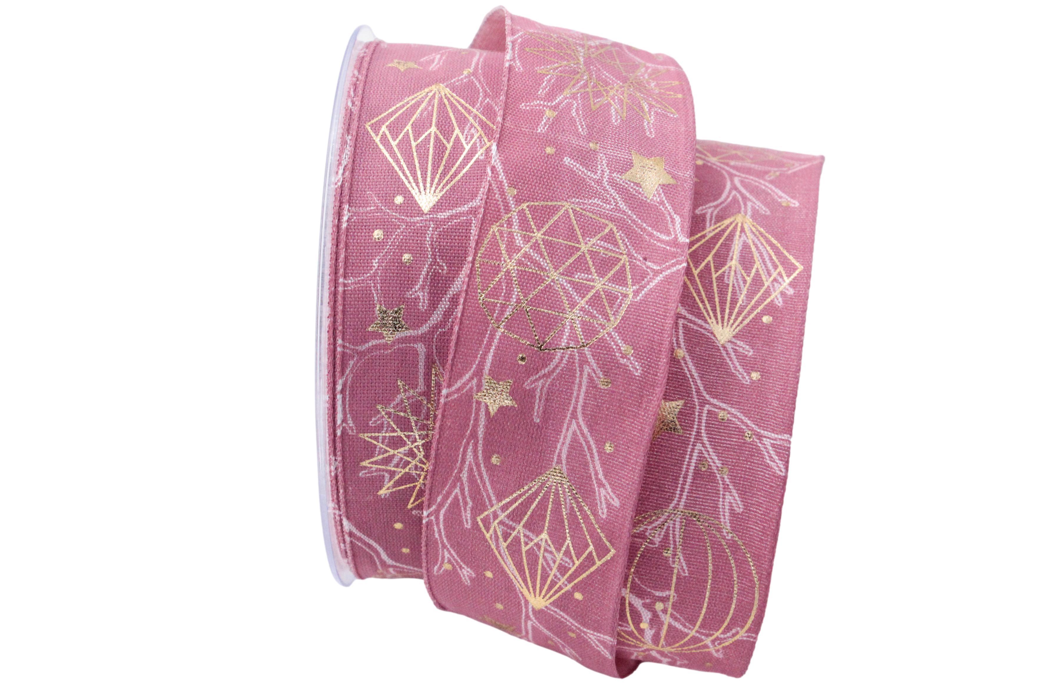 Weihnachtsband Diamanten rosa 40mm mit Draht