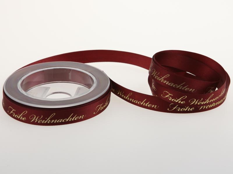 Weihnachtsband Frohe Weihnachten Bordeaux 15 mm ohne Draht