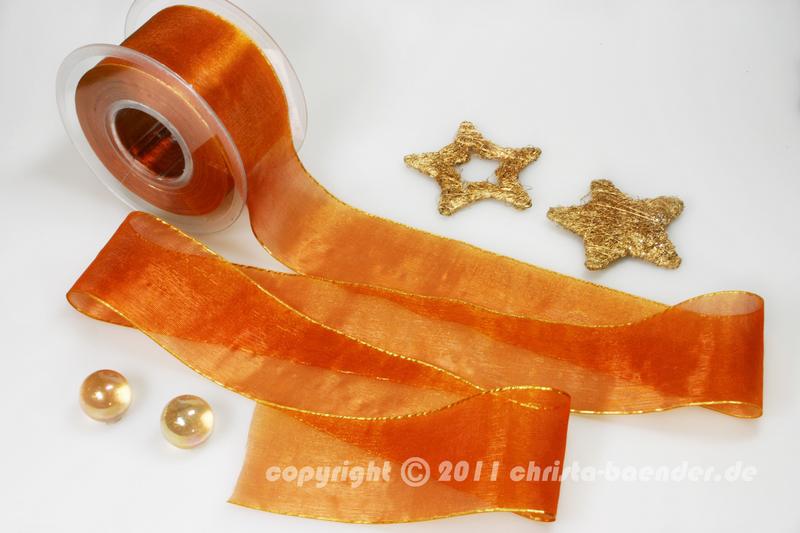 Ein sehr hochwertiges Organzaband mit Goldkante. Sehr schön zu kombinieren in Schleifen und für Bastelarbeiten in der weihnachtlichen Verpackung und Dekoration.