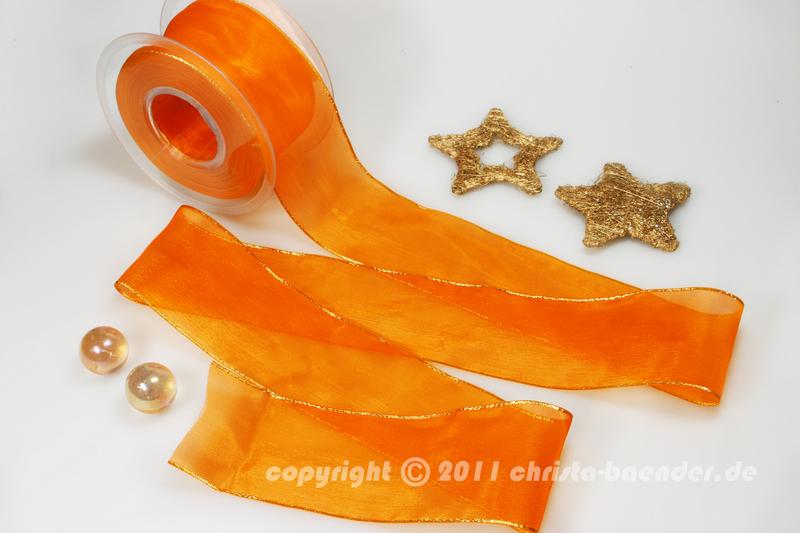 Weihnachtsband Glamour Orange ohne Draht 50mm
