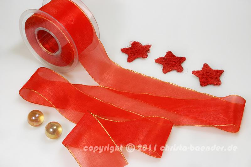 Ein sehr hochwertiges Organzaband mit Goldkante. Sehr schön zu kombinieren in Schleifen und für Bastelarbeiten in der weihnachtlichen Verpackung und Dekoration.