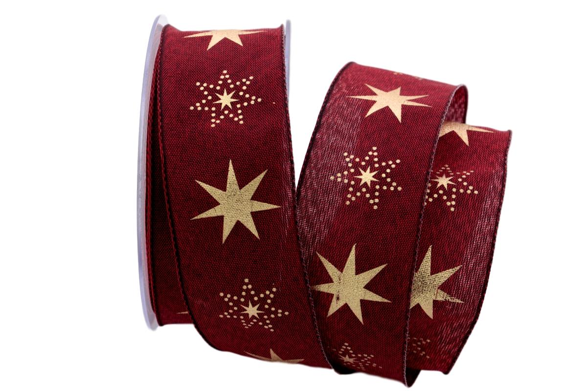 Ein Schleifenband mit Nylonkante. Dieses Sternenband ist auf Naturoptik gestaltet. Es bringt die Moderne mit dem Bewußten in Einklang. Ob Pakete oder Dekoration mit diesem Band ist man zur Weihnachtszeit immer gut ausgestattet.