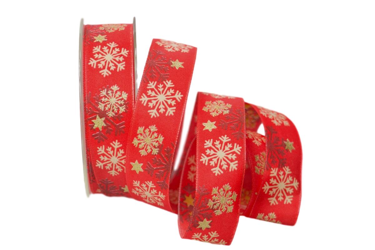 Ein Motivband mit mit traditionellen Eiskristalldruck in moderner Farbgestaltung. Schön für die weihnachtliche Dekoration und Verpackung.