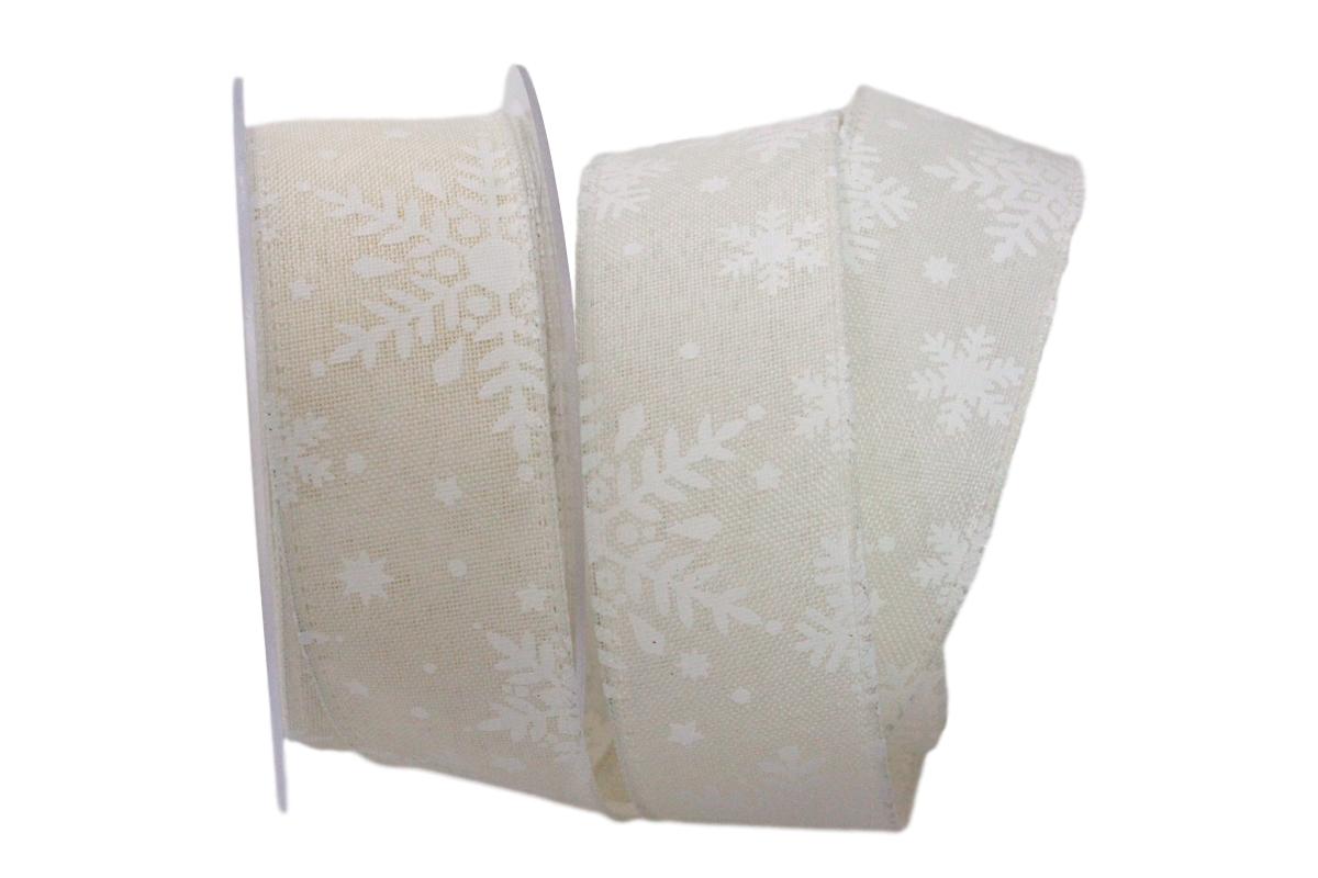 Ein modernes Motivband mit winterlichen Druck. Wirkt sehr natürlich durch das Leinen / Jute- ähnliche Untergrundmaterial.. Dieses Band ist für die trendige Naturschiene sowie für die schlichte Verpackung und Dekoration bestens geeignet. Durch den Draht an den Rändern lassen sich schöne große Schleifen binden und bleiben lange in Form.