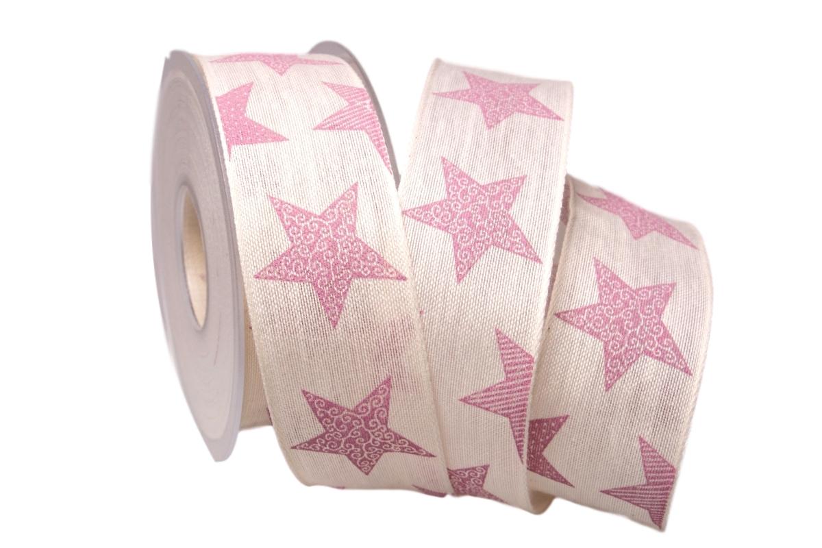 Ein Weihnachtsband in Leinenoptik mit aufgedruckten modernen, verschnörkelten Sternen. Ob traditionell oder modern, mit diesem Dekoband ist jede Verpackung und Dekoration ein Hinkucker.