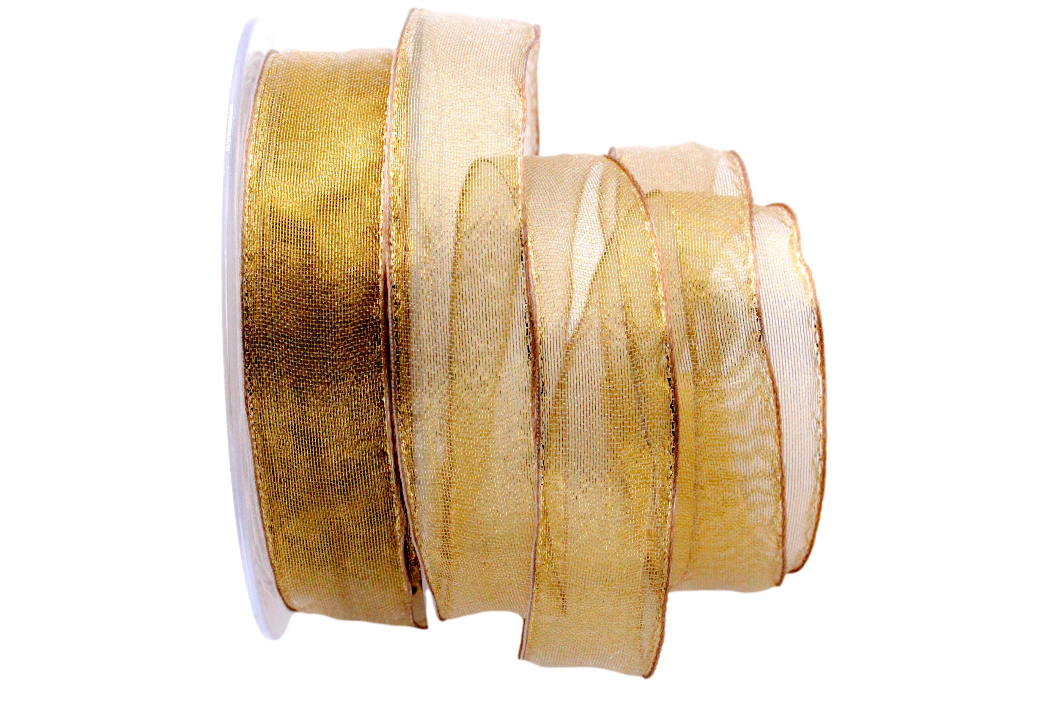 Ein sehr hochwertig verarbeitetes Goldband in Organza. Lässt jede festliche sowie weihnachtliche Verpackung und Dekoration im edlen Glanz erstrahlen.