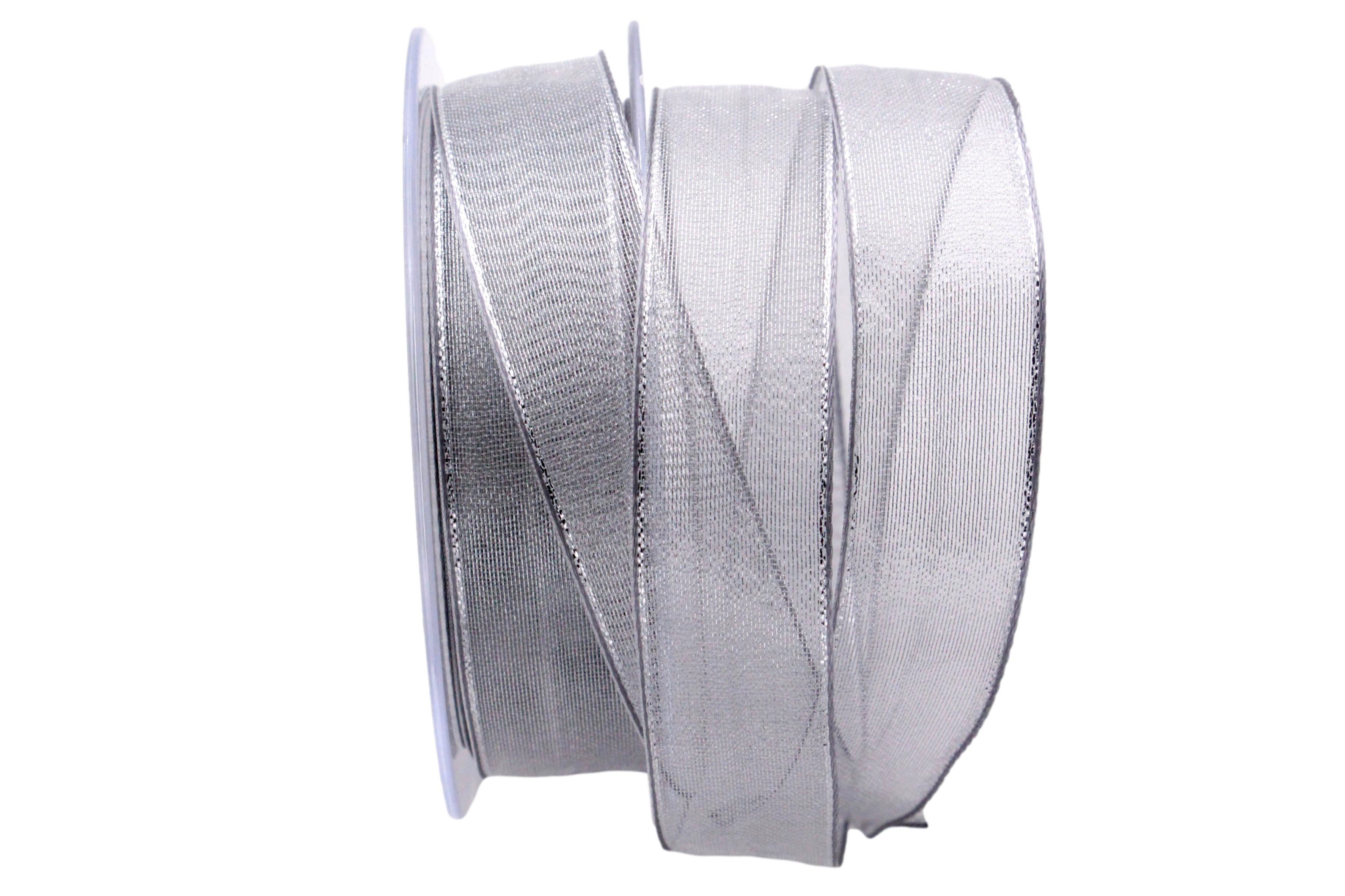 Ein sehr hochwertig verarbeitetes Silberband in Organza. Lässt jede festliche sowie weihnachtliche Verpackung und Dekoration im edlen Glanz erstrahlen.